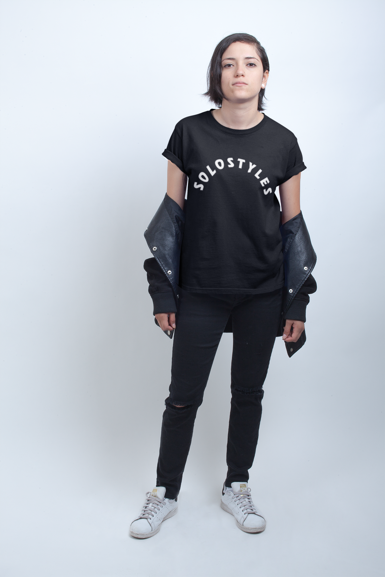 A classic unisex SOLOSTYLES tee that works well with any outfit. Made of a heavier cotton with a double-stitched neckline and sleeves.